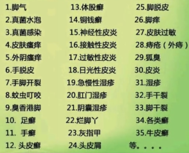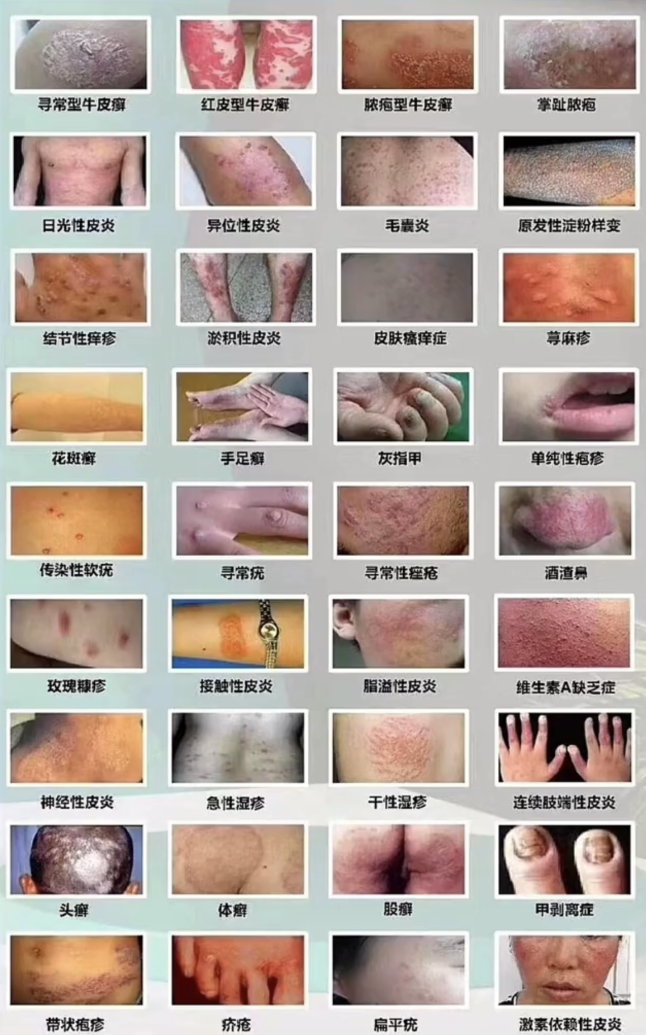 这是110种常见的皮肤病名字,每一种病症都有其特定的症状和治疗方法。如果你发现自己出现了任何皮肤问题,建议及时咨询医生,以便获得正确的诊断和治疗。同时,保持良好的个人卫生习惯和健康的生活方式也是预防皮肤病的重要措施。