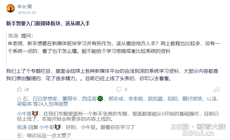之前就有新者大陆有朋友在平台上面向牟老师提问“新手想要入门新媒体板块,该从哪入手”。