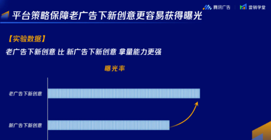 接下来胖九就从平台算法逻辑的角度来跟大家阐述一下我自己的观点:大家可能会认为,新创意放在新广告里更容易起量,但是,在3.0系统中,广告是用来表达经营诉求的,而不是为了创意测试。什么是营销诉求?比如卖什么产品、想要什么样的营销目的,希望是用什么样的营销模式、人群定向,这些是广告需要表达的信息,而创意的目的是为了吸引点击,吸引和转化的,所以其实站在平台的视角来看,在“营销内容"不变的情况下,创意上新不必新建广告,添加到老广告中即可。而且如今腾讯3.0的系统,针对新创意平台会独立的赋予一些曝光。根据平台披露的数据来看,在老广告中上新创意的曝光量,会比新广告下新创意的曝光量多20%左右,而平台也会针对老广告下的新创意进行小量的流量扶持。另外就需要提到冷启动,大多数的平台在冷启动期间都会参考以往数据,腾讯3.0系统也是一样的,新创意上线是没有数据的,平台就会参考老广告里其他创意的数据做预估,正因为老广告中会有很多创意数据都比较稳定,这更有利于新创意冷启动。- 在“营销内容”不变的情况下,创意上新不必新建广告,添加到老广告中即可