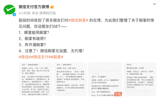 这个简单方便的功能,其实在用的人并不太多,今天微信官方也发布了一个刷掌支付,介绍了适用地区、如何开通、安全性等相关信息。