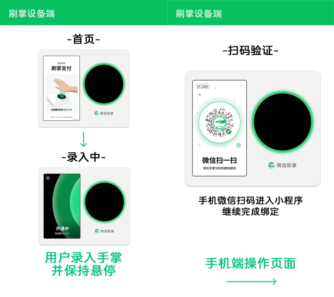 想要开通也十分简单,只需在任何一家拥有掌纹识别设备的门店录入自己的掌纹,然后再用微信扫码并授权完成绑定就可以了。