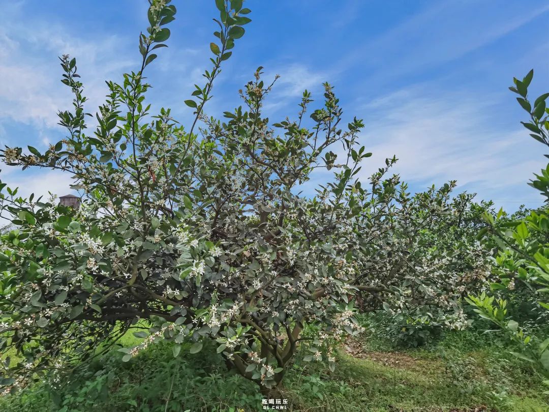 骑行在橘林中,鼻尖萦绕着浓郁不散的花香,柑橘树花香味弥漫了半个宁静的乡谣里。