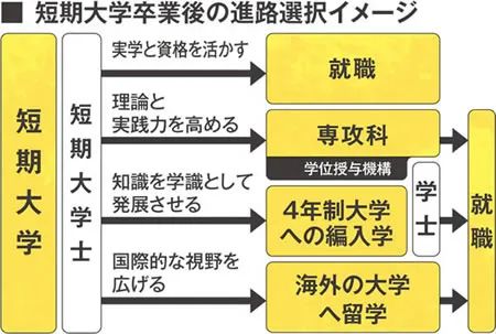 日本二战后开始实施学校教育法,战前的旧制专门学校开始演变为新制大学,有一部分学校无法满足大学的设置标准,从而诞生了短期大学,在1950年时,日本设置了149所短期大学,其中公立17所,私立132所。