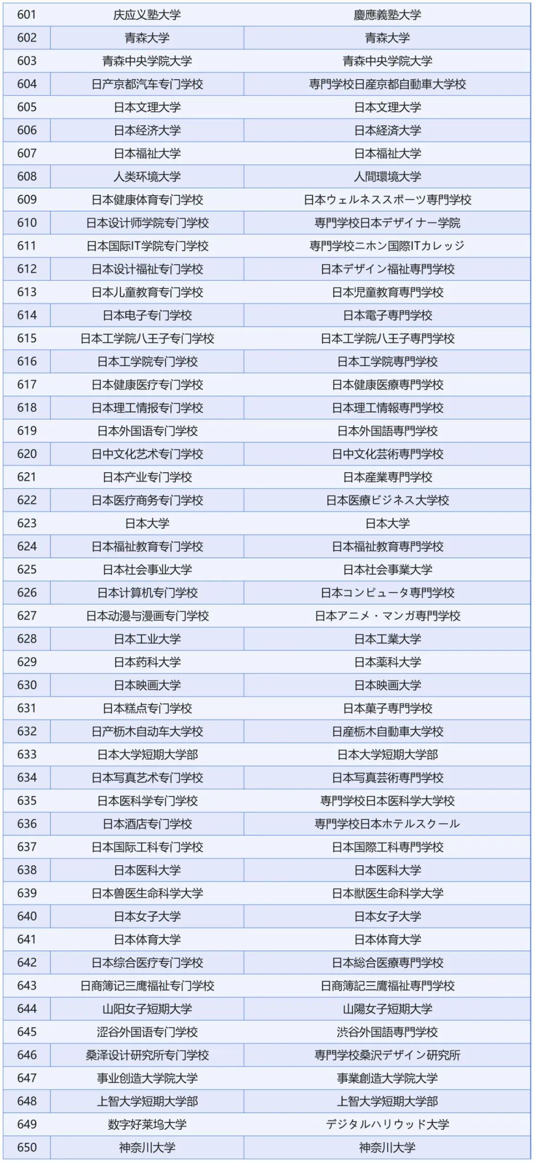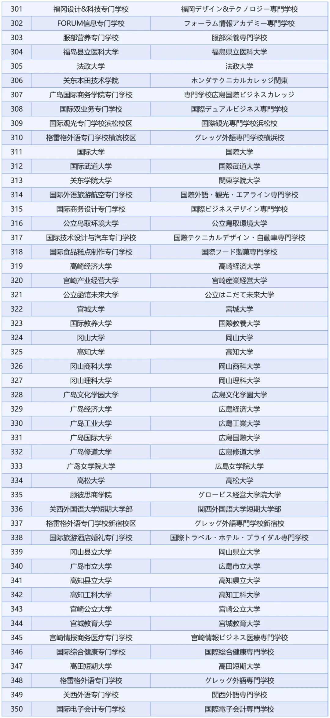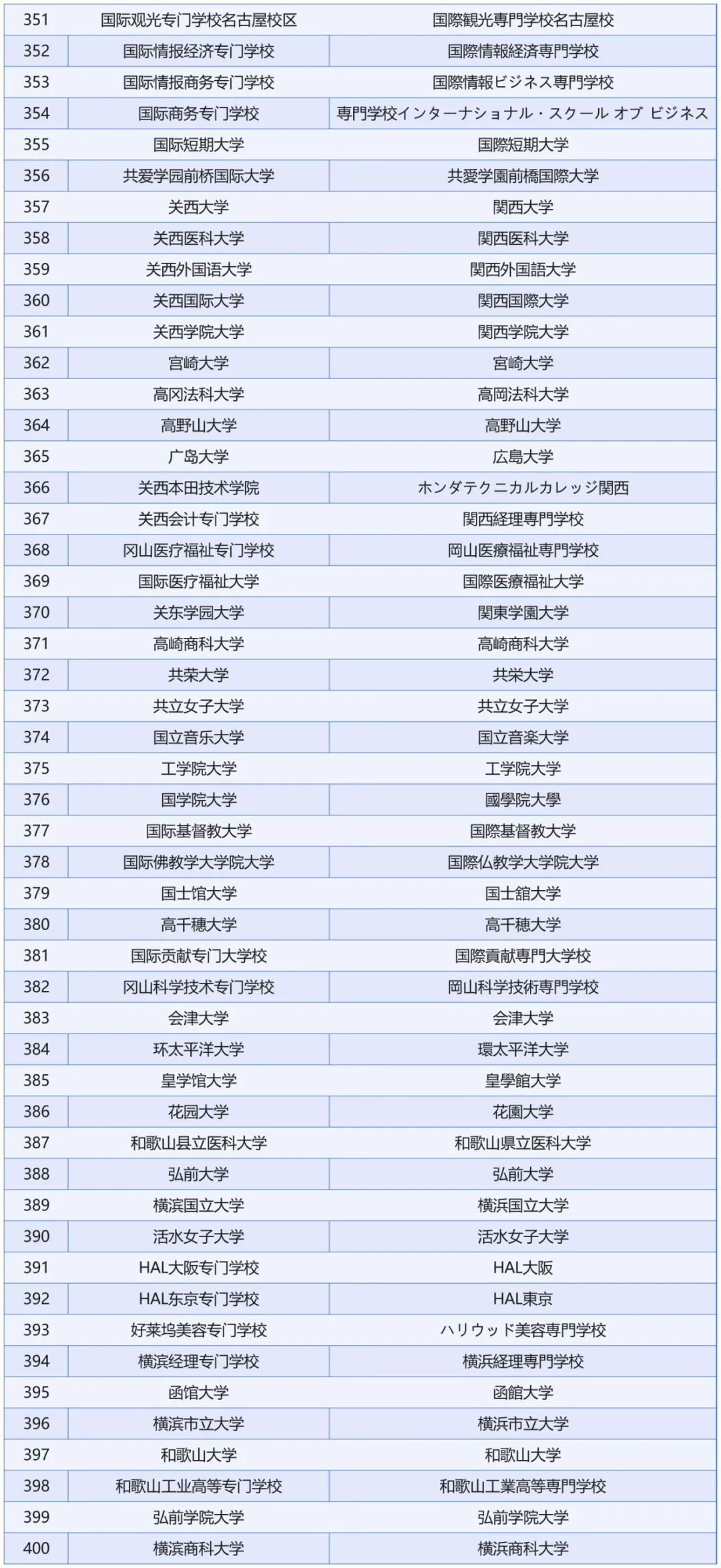 认证日本院校完整名单