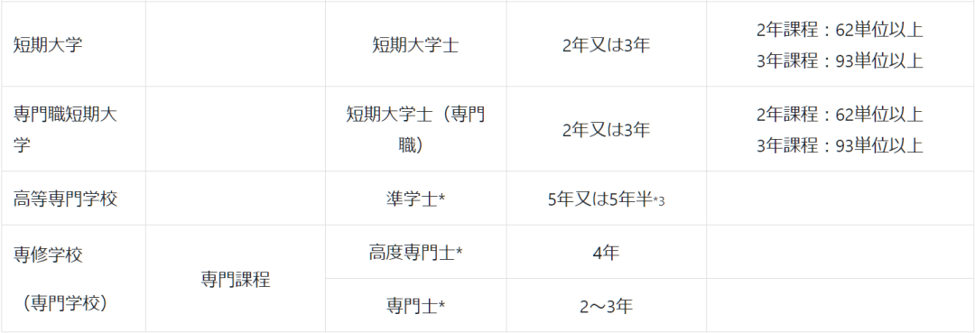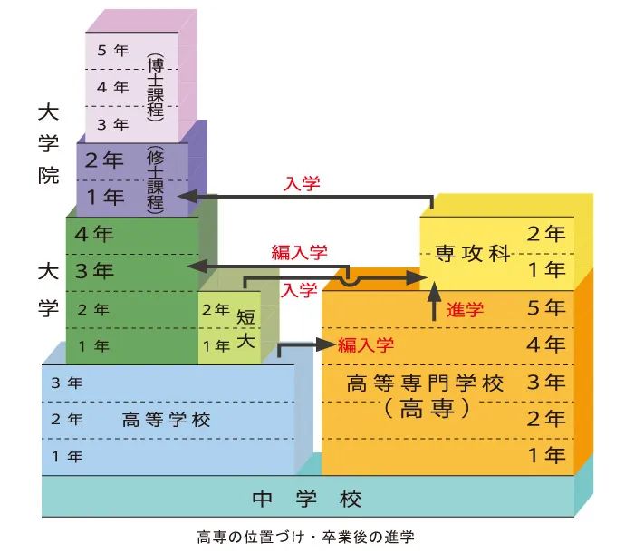 *3 高等专门学校的学习年限通常为5年(商船为5年半),从第3学年开始接收留学生。