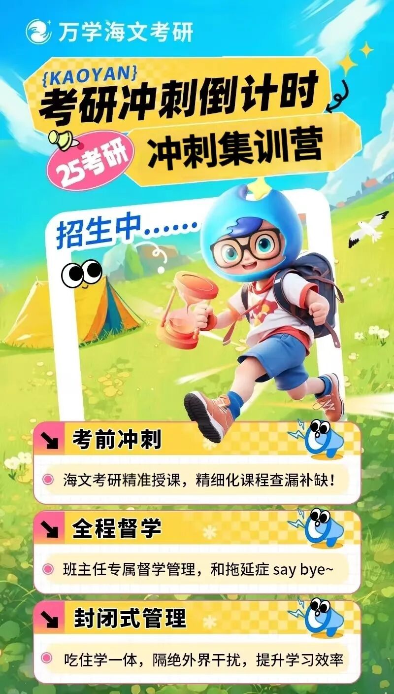 教学+督学+规划+自习+生活一体,在特训营期间,为你提供一站式的备考方案,通过英语、政治、数学课程,搭配督学与日测,提升每天的有效学习时间和学习效率。