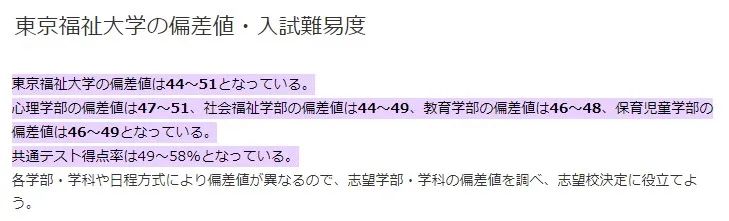 昨天,九思酱的知乎后台一下子炸了,有同学邀请我回答问题,但更多的同学都是直接私信我,问:九思酱非常理解大家看到“ 中文授课 ”这4个字的雀跃心情,仿佛是拯救自己在日语地狱里日夜煎熬的一束光。既可以去日本留学,又可以跳过语言这一大难关,简直不要太爽!首先呢,东京福祉大学是受到中国教育部认可的日本私立大学。也就是说,东京福祉大学的本科、硕士毕业证在国内有流通的价值,可以辅助小伙伴们找到合适的工作。其次,东京福祉大学开办中文授课,而且出愿材料中的日语方面仅仅需要N2左右的证明,大大节省了小伙伴们在语言学校的备考时间。有N2证书的小伙伴,甚至可以跳过语言学校,直接从国内直升进入东京福祉大学。看到这里,同学们是不是更加心动了,想要立马私信九思酱了?虽然,东京福祉大学是受到中国教育部认可的日本私立大学,但是这所学校的偏差值只有44~51。大家都知道日本是拿偏差值来衡量学校层次高低的,偏差值越高学校越好,比如东京大学的偏差值是67.5~72.5。这么一对比,同学们就清楚了吧,东京福祉大学其实相当于国内的3本院校,排名就更是数不上号了。第二点,东京福祉大学开办中文授课,确实可以为大家省下语言学校的时间,从而省下一大笔语言学校的学费和住宿费。但是,东京福祉大学属于日本私立大学,学费非常高昂,随便一个2年制的修士(=国内研究生),就要1,850,000日元,换算成人民币相当于9万3千多,比早稻田大学学费都贵。更何况再加上每个月的住宿费、交通费、生活费等等费用,大家从语言学校省的钱,转头都交到东京福祉大学手里了。