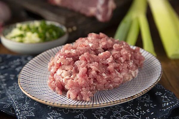 将准备做馅的肉放入冰箱内冷冻,待肉完全冻实后取出,然后用擦菜板擦肉,很容易就能把肉擦成细条,这时只需再用刀轻轻地剁几下,只要5分钟就可以完成,且做出来的肉馅细腻均匀。