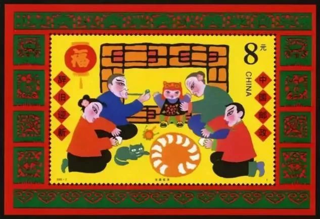 ▲春节小型张邮票《包饺子》。(2000年元月29日)