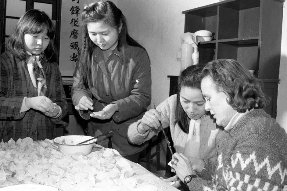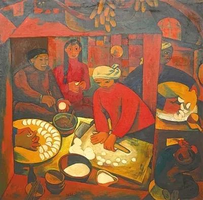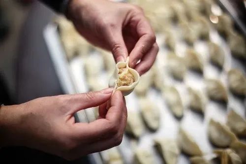 ▲1987年元旦前夕,复旦大学外语系英美文学专业二年级的部分学生,自已动手包饺子聚餐。图为美籍教师芭芭拉·罗森柏格在跟学生学包饺子。(图片来源:新华社)当今,饺子已经超越地域、民族,得以大范围普及,甚至走上太空,出现在航天员的食谱中。2021年春节,神舟十三号飞行乘组三名航天员,升天时就携带了加热即食饺子,竟然有三种馅:猪肉白菜饺子、鲅鱼饺子和黄花菜饺子。描绘全家一起包饺子的热闹场面,上了邮票,随着信封将喜庆带到了千家万户;还上了油画,并通过色彩和造型将温馨传递。当旧历春节来临,在除夕之夜,听着爆竹声声,观看着歌舞晚会,手里头包着饺子,说着吉祥话,一年的辛苦都烟消云散了。