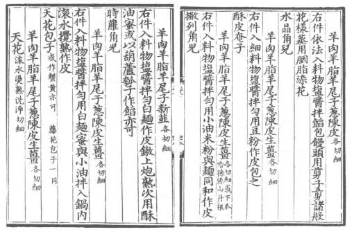 ▲元人忽思慧《饮膳正要》所载水晶角儿、撇列角儿、时萝角儿。驼峰饺子是一种煎饺。据《东京梦华录》载,宫中御宴,在喝第三盏御酒的时候,就用“双下驼峰角子”佐酒。制作驼峰饺子皮的原料有面粉、酥油、冷水和盐等,其制作方法是用“骨卢槌”擀皮,放进炉子烤熟,故口感酥脆。是罗饺子也被称为市罗饺子或时萝饺子。饺子皮制法是:将香油倒入面中搅拌,并倒入滚水,烫成熟面。这种饺子是用生馅包,做成蛾眉状。然后用油炸熟,四只为一份。烙面饺子用烫面制皮,包裹完毕,还要用盏作模,压成各种造型。明人刘若愚在《酌中志》一书中,记载了大量亲身经历的宫闱秘事。他提到在正月初一这一天,宫中要吃“水点心”,这种“水点心”也被称为“扁食”,就是饺子。更有意思的是,此书还提及,吃饺子的时候会偷偷在里头放一二枚银钱,吃到的人大吉大利。另外,明太祖还把正月初一吃饺子的习惯推广到民间,他命令文武百官、天下百姓遍食“水角子”,取名“遍食”,有普天同庆的含义。宫中一般称饺子为煮饽饽,“饽饽”一词据说来自满语,专指各种面点。宫眷们要在除夕夜里包好饺子,备岁更时分及初一早晨之用。这里头还有一个故事,说吴三桂叛乱的时候,其子吴应熊得到消息,将告变书藏在饺饵之中,除夕进奉给皇上,皇上事先就留了心。等到辞旧迎新的时刻,皇帝在行瞻拜礼后,就要到昭仁殿东小屋吃素馅饺子了。到了光绪皇帝,吃饺子改在养心殿,素馅饺子变成了肉馅,但仪式依旧。怎么保证皇帝吃到热腾腾刚出锅的饺子呢?原来腊月底至正月间,皇帝行走宫里,每过一个门槛,都要放一挂鞭炮。因此,御茶膳房就根据鞭炮声决定煮饺子的时间,等皇帝到了,饺子恰好出锅。此时,饺子被放进剔红漆飞龙宴盒里,由太监端到皇帝面前的大吉宝案上。据清宫档案,嘉庆四年(1799),除夕饺子是放在木胎黑地描金漆大吉宝案上的,案上刻有“一人有庆”“万国咸宁”“甲子重新”“吉祥如意”等吉语。首领太监把六只饺子装进“三阳开泰”纹饰的珐琅大碗,正好放在大吉宝案“吉”字上,请皇帝进食。旁边的碗也不闲着,里头盛放“乾隆通宝”“嘉庆通宝”各一枚。
