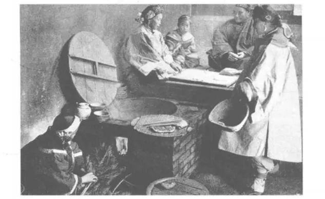 ▲西北农村富裕人家包饺子的情景。(图片来源:《中国近代影像资料库》)