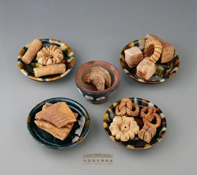 ▲唐 点心、饺子及食具 新疆尔自治区吐鲁番市出土 中国国家博物馆中国古代饮食文化展。(图片来源:国博君)